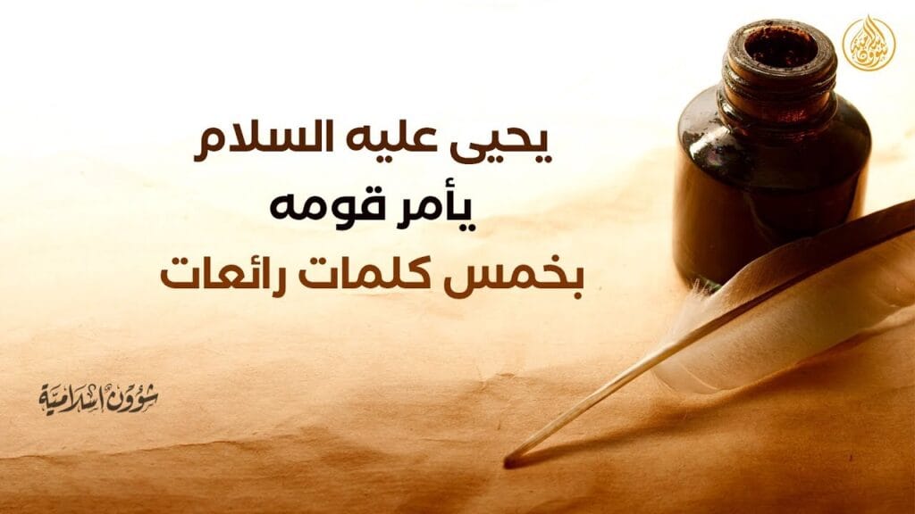 « إِنَّ اللَّهَ أَمَرَ يَحْيَى بْنَ زَكَرِيَّا بِخَمْسِ كَلِمَاتٍ أَنْ يَعْمَلَ بِهَا وَيَأْمُرَ بَنِى إِسْرَائِيلَ أَنْ يَعْمَلُوا بِهَا ، وَإِنَّهُ كَادَ أَنْ يُبْطِئَ بِهَا.