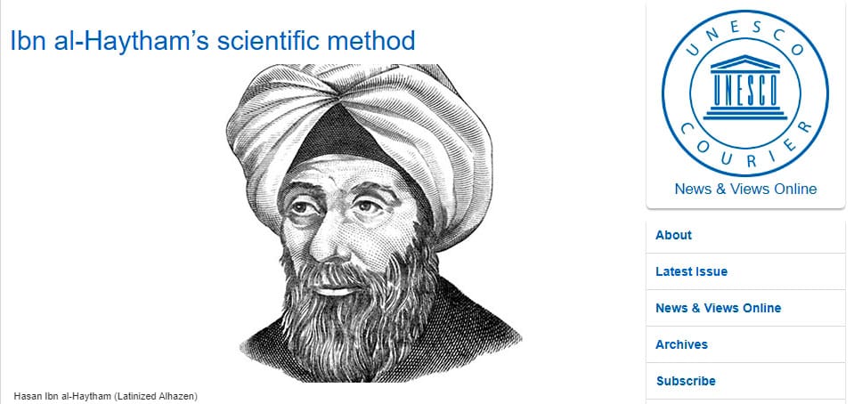 وهتلاقي هنا مثلاً احتفال اليونيسكو بالحسن ابن الهيثم باعتباره مؤسس المنهجية العلمية: