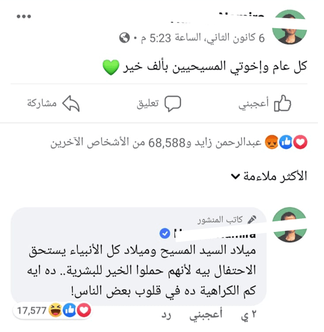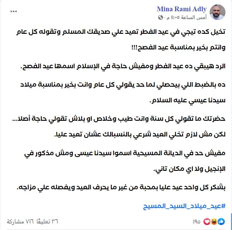 الملفت للنظر أن العديد من متابعيه من النصارى لم يرضَ هو الآخر، ويقول له كلاماً معناه: (لا نعترف بأن المسيح نبي، إما أن تهنئنا على عقيدتنا في المسيح كإله، وإما لا نريد معايدتك) !