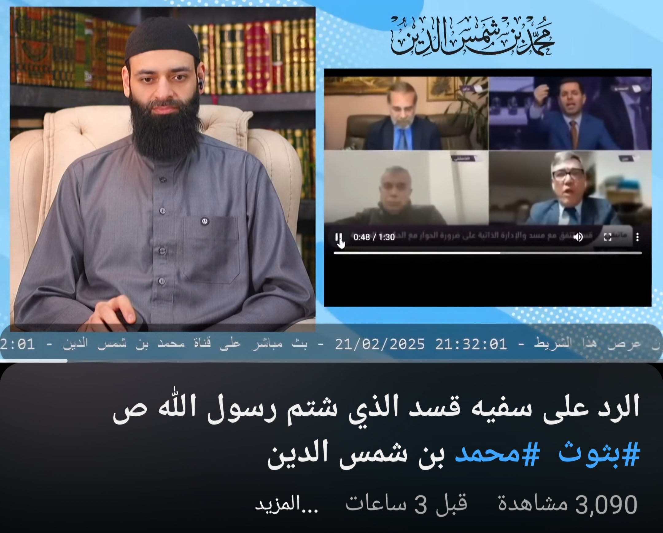 من العار أن يُتخذ اسم النبي صلى الله عليه وسلم وسيلةً للمزايدات والمناكفات الشخصية، بدلًا من أن يكون دفاعًا صادقًا لوجه الله، وهذا ما يفعله محمد شمس، الذي لم يعرفه الناس بدفاعه عن الدين، بل بطعنه المستمر في العلماء وإشعال الفتن، واليوم، يحاول تصدّر المشهد عبر استغلال حادثة مجهولة مغمورة فيها إساءة للنبي صلى الله عليه وسلم، ليس غيرةً عليه، بل للنيل من خصومه، وفي هذا الرد، سنكشف تناقضاته ونرد على مزاعمه بالحجج والبراهين، ليعلم الجميع أن غيرته ليست إلا ستارًا يخفي وراءه نفاقه وأغراضه الشخصية.