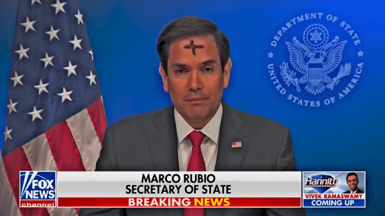 وأنا أنظر إلى الصليب المرسوم على جبهة وزير الخارجية الأمريكي، تذكرت الدجال وأحداث آخر الزمان، وما أخبر به الصادق المصدوق صلى الله عليه وسلم.