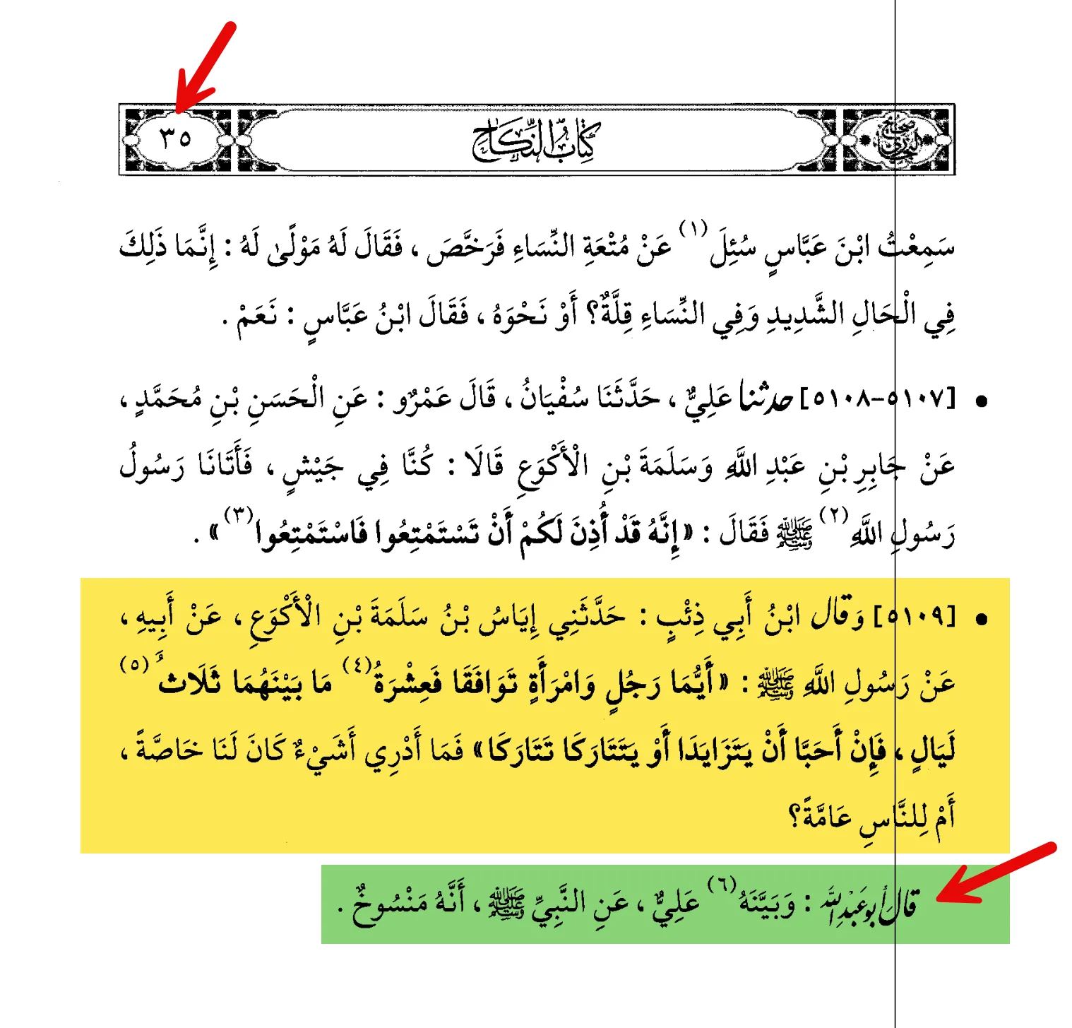 يعني هو هنا يثبت العكس لأن المتعة كانت حلالا وحرمت والدليل أنه ساق حديث التحريم وهو ما انتهى إليه الحكم ثم ساق أحاديث أخرى منسوخة وعلق عليها في الصفحة التالية وفيها الحديث المذكور؟