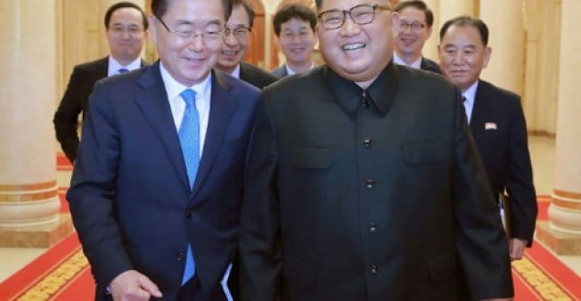 وفي بيونغ يانغ أفادت وكالة الأنباء الكورية الشمالية الرسمية أن كيم جدّد خلال لقائه المبعوث الكوري الجنوبي تعهّده إخلاء شبه الجزيرة الكورية من السلاح النووي.